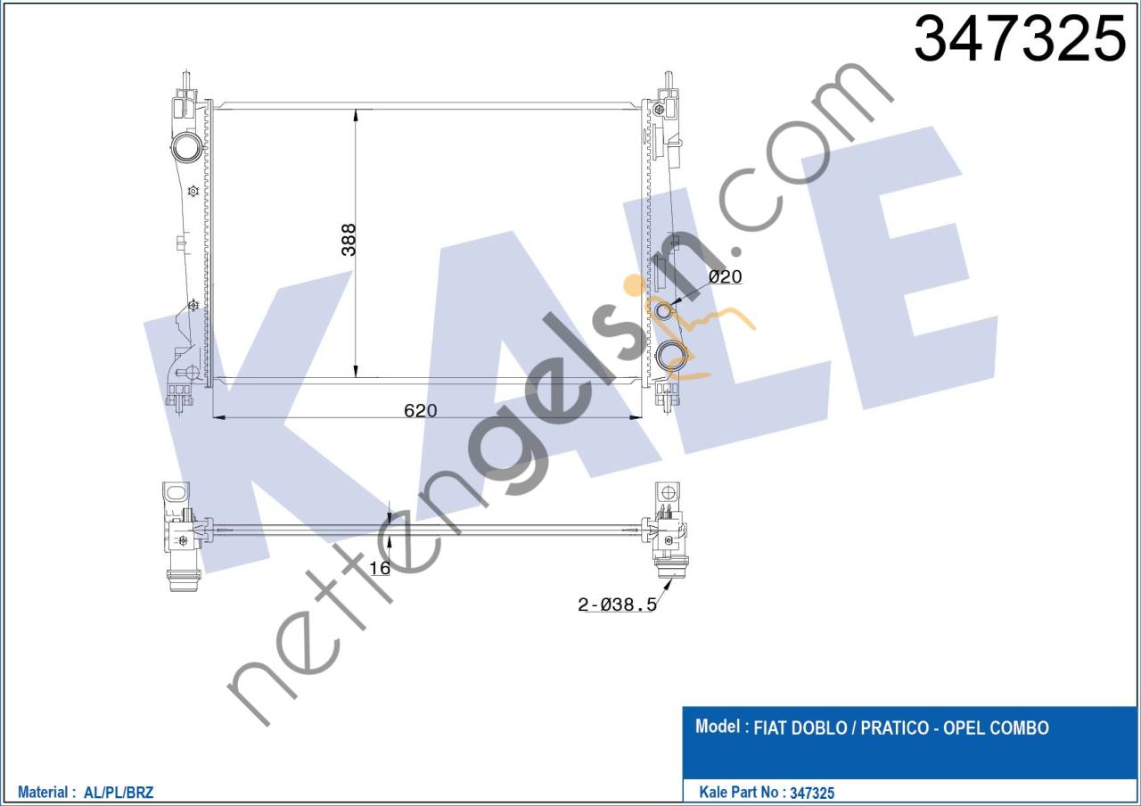 KALE 347325 MOTOR RADYATORU DOBLO III 1,3 / 1,4 KLIMALI FIAT BİNEK MOTOR SU RADYATORU