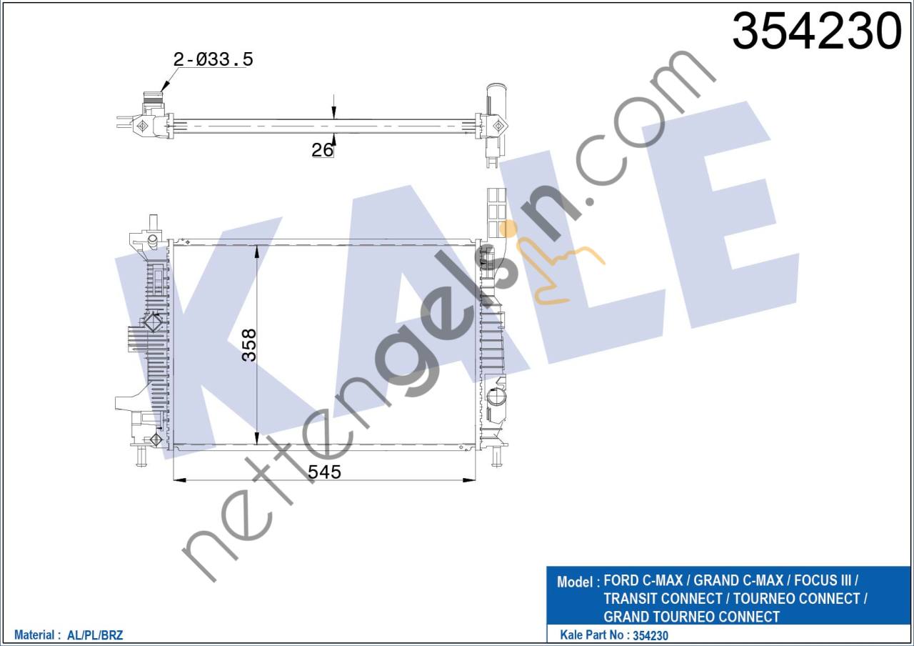 KALE 354230 SU RADYATOR C MAX II / GRAND C MAX / FOCUS III 13> / TRANSIT CONNECT 14> 1.0 ECOBOOST FORD BİNEK MOTOR SU RADYATORU